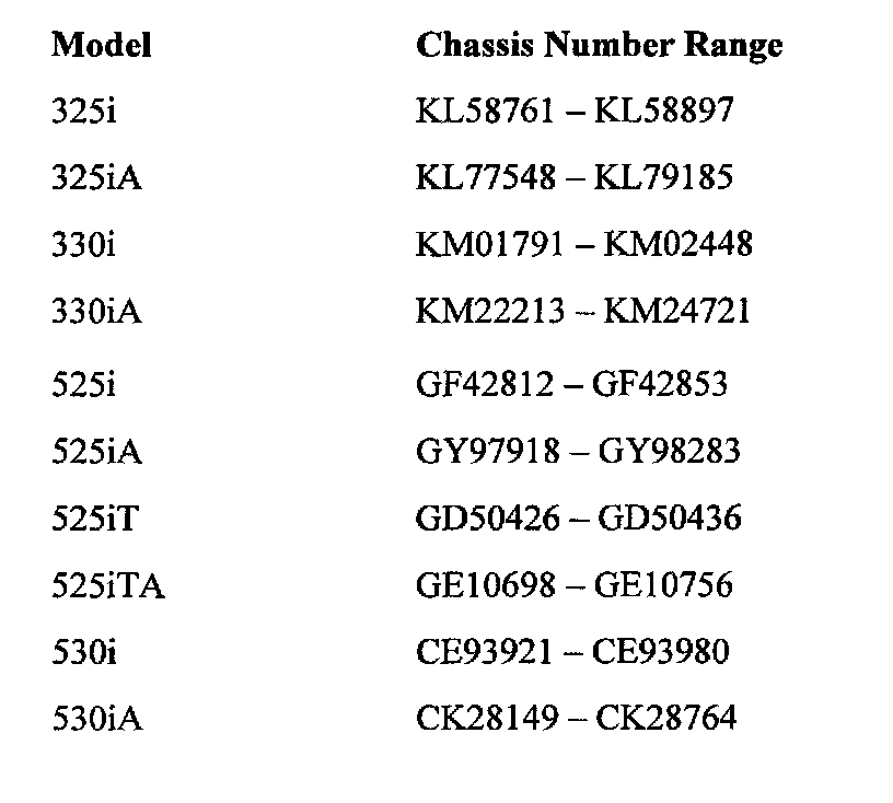 This Service Action involves E46 3 series and E39 5 series vehicles with M54 engines which were produced from 9/02/02 9/11/02.