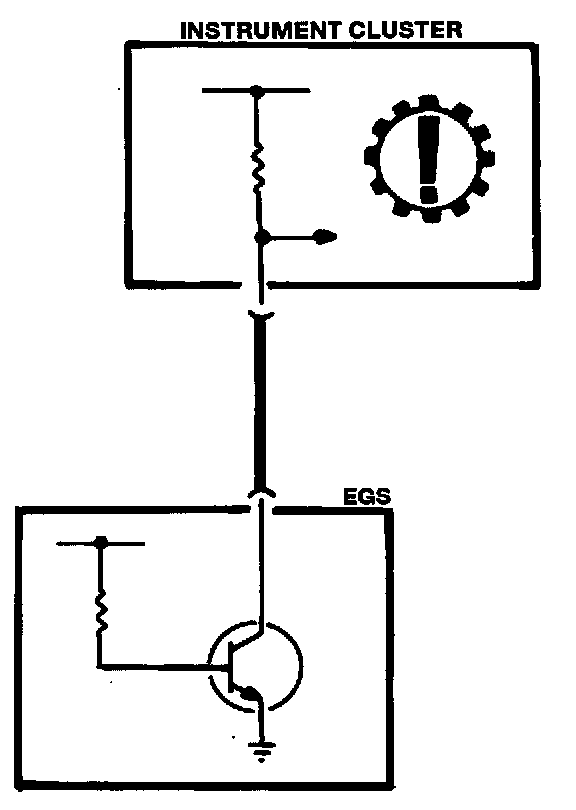 The instrument cluster produces a voltage that is pulsed (low) by the EGS control unit module during normal operation. If a fault is detected by the self-diagnostics of the control module, a fault report is signalled to the instrument cluster by a constant high voltage level, which illuminates the indicator bulb.