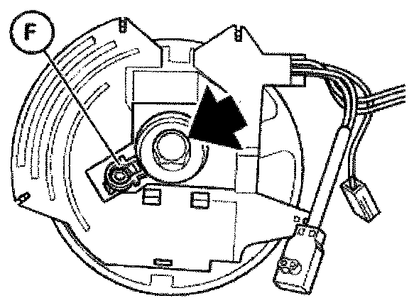 CAUTION! When screw is unfastened, torsion spring (F) cuts in which secures contact ring in central setting. On no account must the steering wheel be moved if screw is not tightened. Contact ring will be damaged!