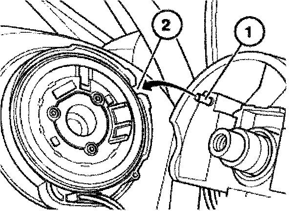 - Retaining pin (1) must engage in recess (2).