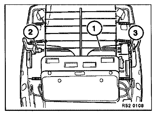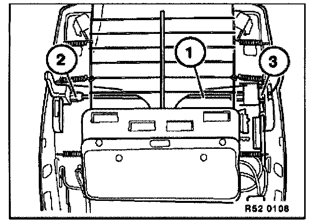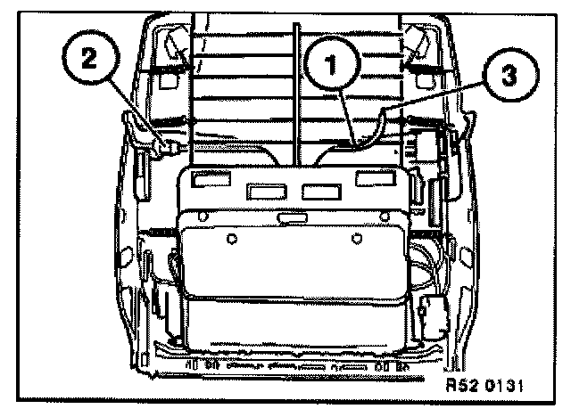 Pull backrest adjustment shaft (1) out of backrest adjustment gearing (2) and drive unit for head restraint adjustment (3).