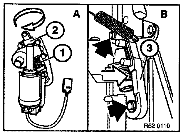 Screw in output spindle (1) up to stop (2) and then screw back 1 turn.