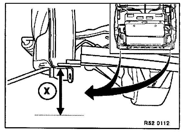Place backrest frame on a flat surface. Measure distance (X) on left and right.