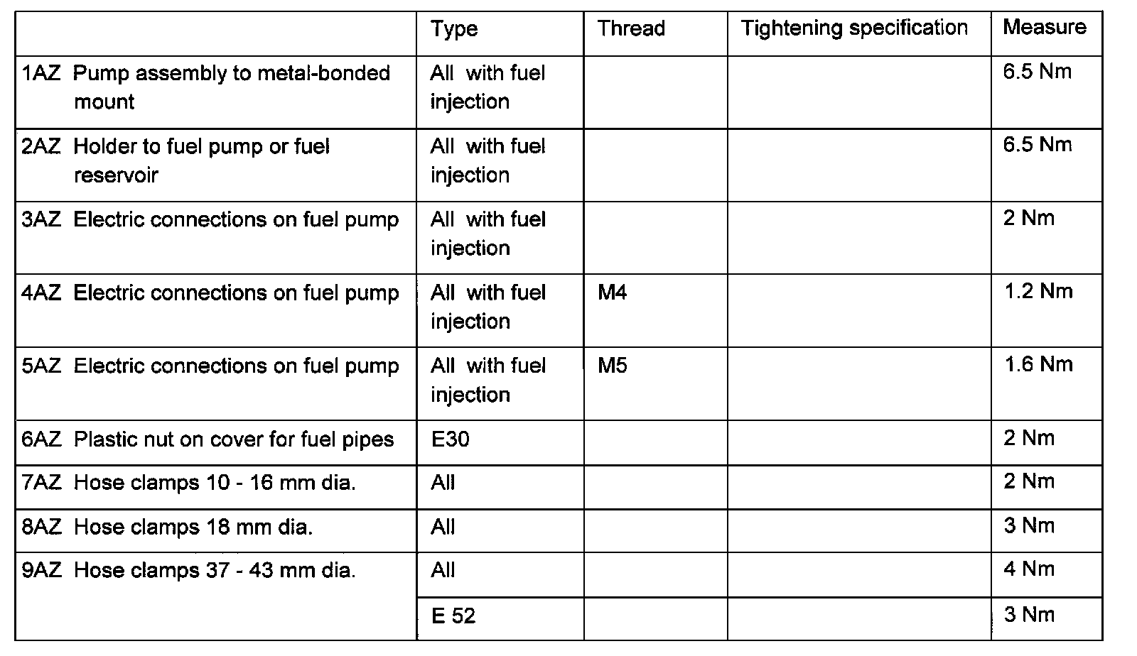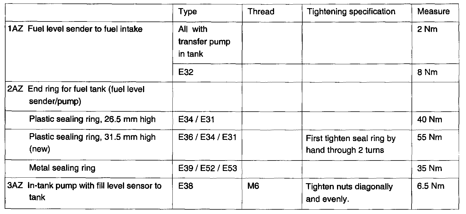Fuel Pump - Torque: