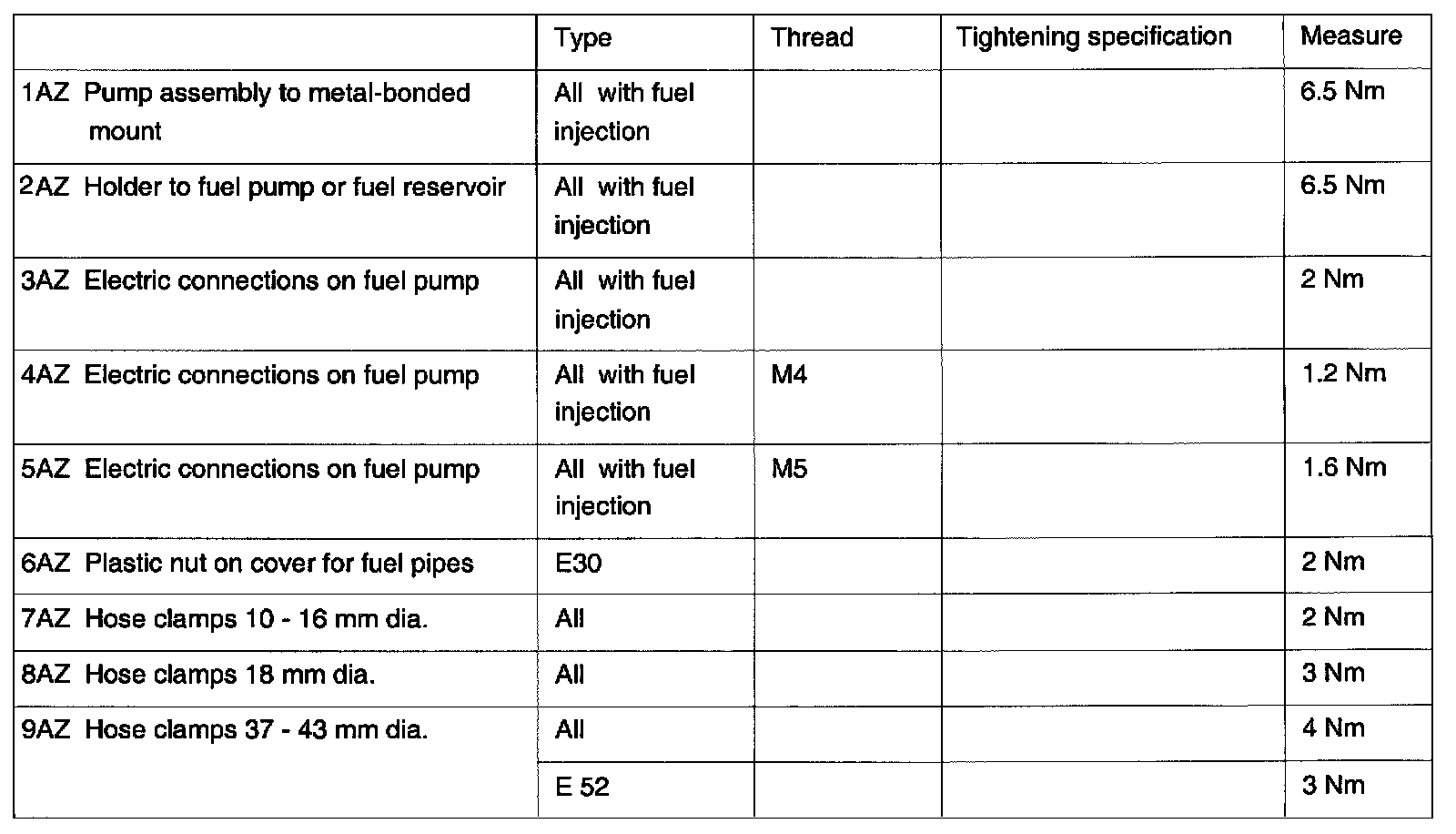 Fuel Supply - Torque: