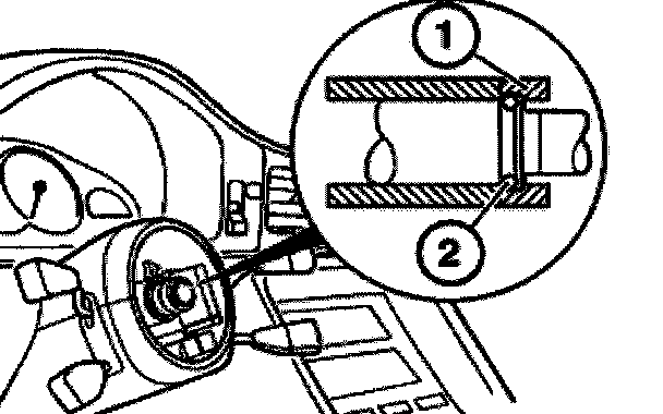 Check position of collar (1) with regard to snap ring (2).