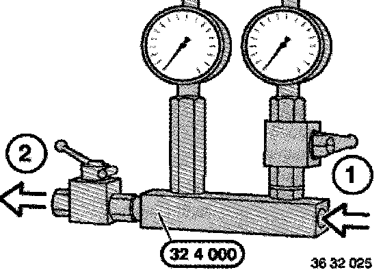 Disconnect pressure line from pump and connect to special tool 32 4 000 connection (2).