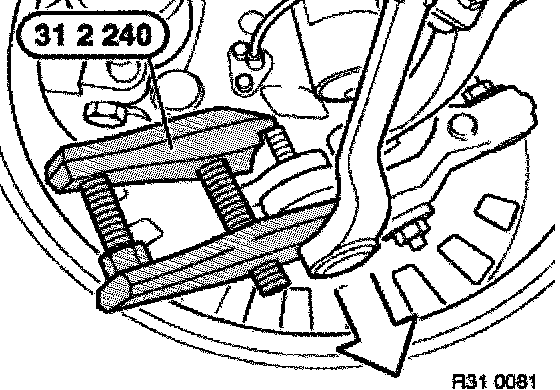 Press control arm off swivel bearing with special tool 31 2 240.