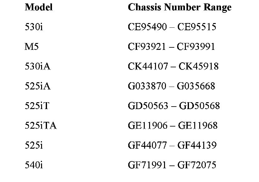 This Service Action involves E39 (5 Series) vehicles, which were produced from April 1, 2003 to July 31, 2003.