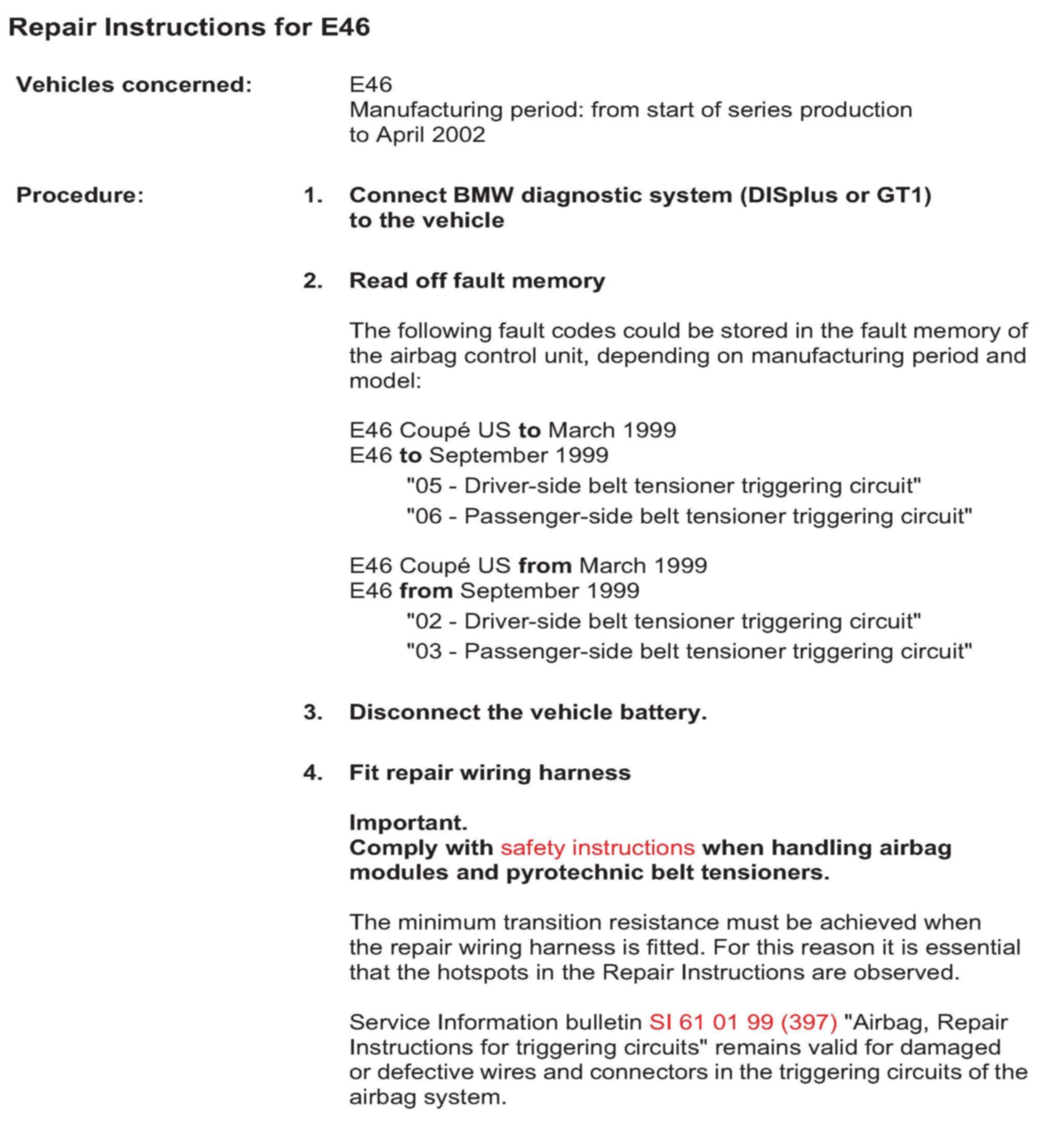 Repair Instructions For E46