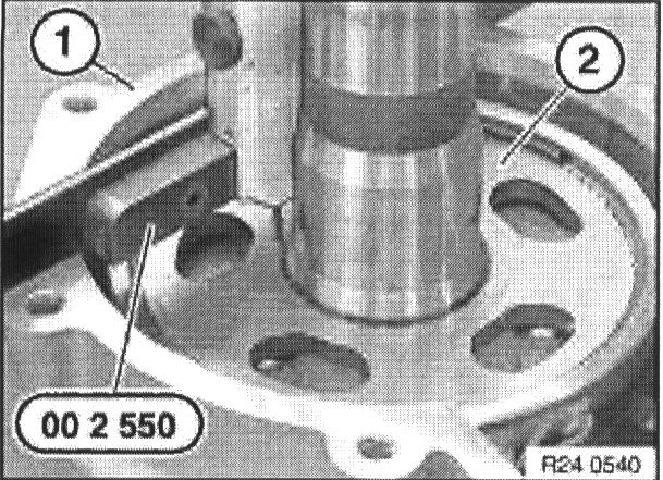 Grip output flange (1) with special tool 23 0 020.