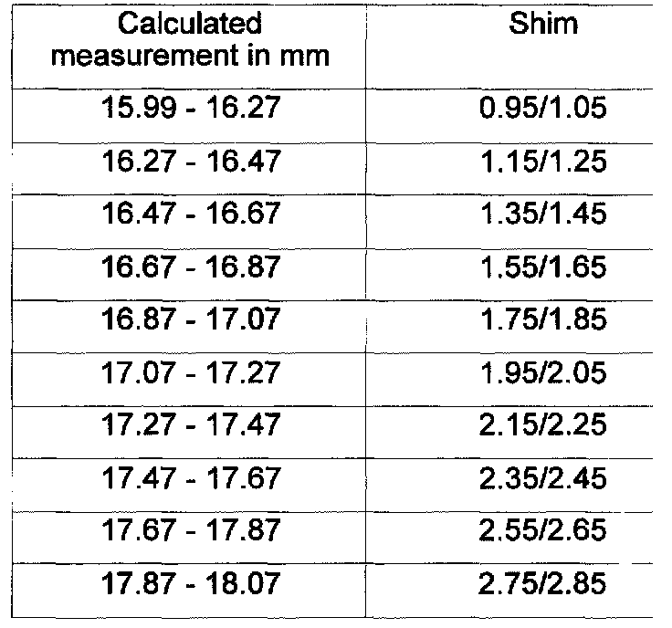 Calculate the new shim with this measurement from the table.