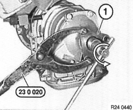 Grip output flange (1) with special tool 23 0 020.