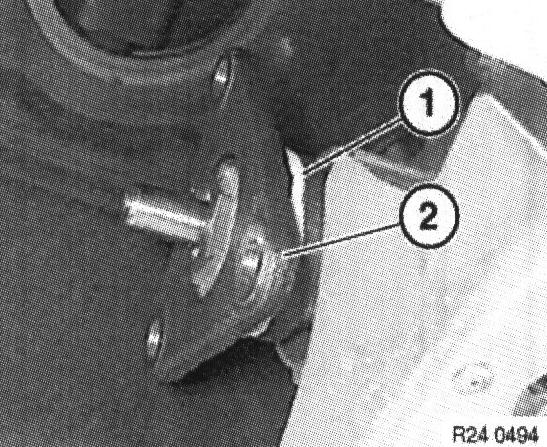1. As the substitute, the output flange with spring washer (2) is identified with a white marking (1) around its circumference.