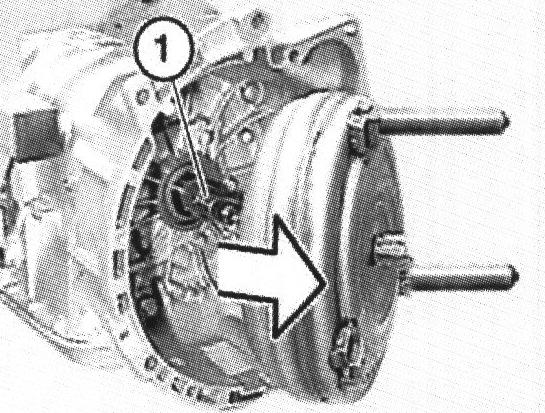 Manually push and turn the torque converter into the converter bell housing until the recess of the converter hub rests in the drive plate of the pump wheel and the torque converter perceptibly slides in.