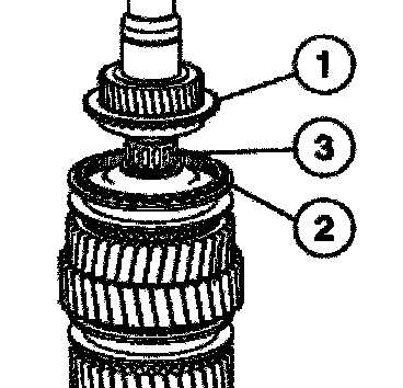 Install the guide sleeve with long shoulder (1) facing the 3rd gear.