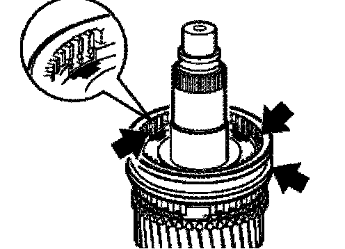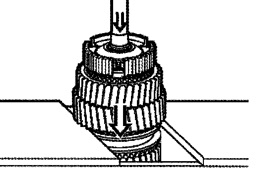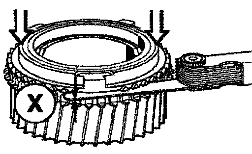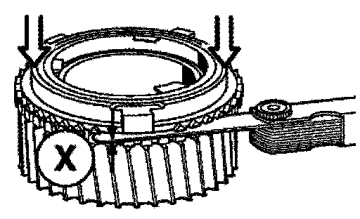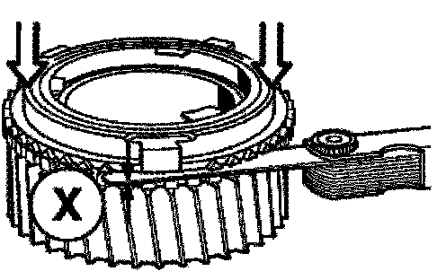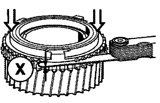 Measure distance X between the gear and synchromesh ring. In so doing, press down uniformly on the synchromesh ring by hand.