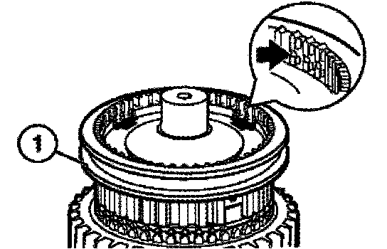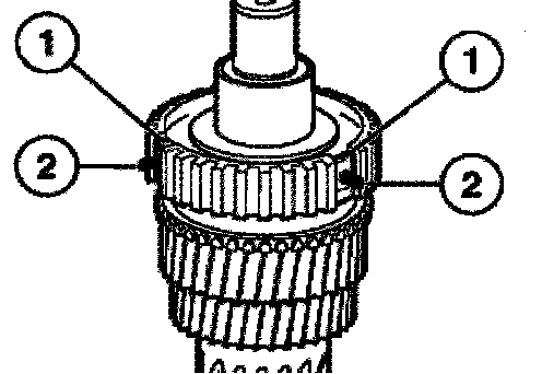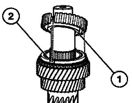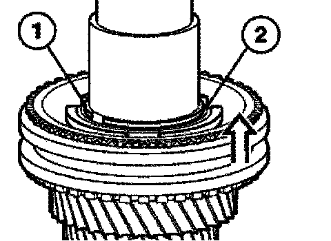 Install the operating sleeve with shouldered end (1) facing the reverse gear.