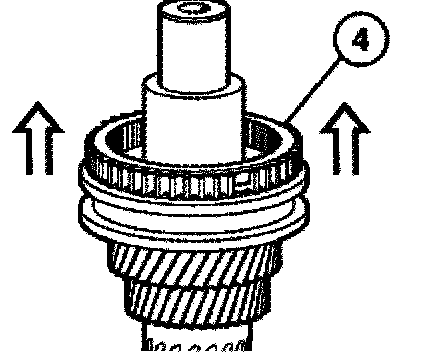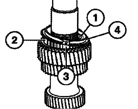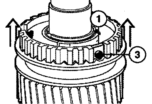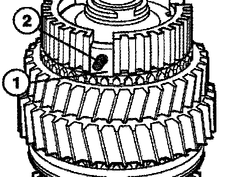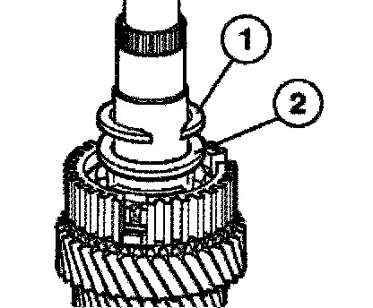 Consisting of: Place the inner race (1), intermediate ring (2) with drives (3) in the recesses of the 1st gear wheel and synchromesh ring (4).