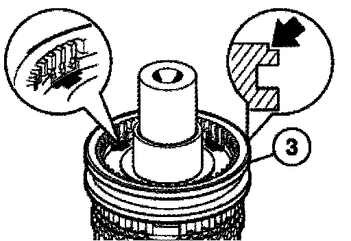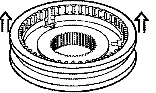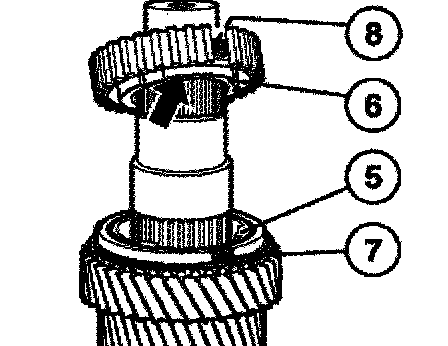 In addition, dogs (7) on the synchromesh ring must engage in grooves (8) of the guide sleeve.