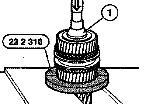 Place special tool 23 2 310 at the 3rd gear wheel.