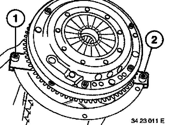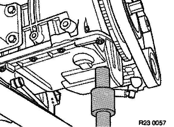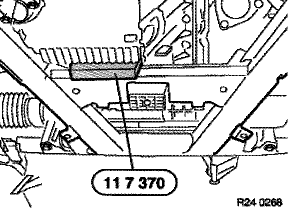 Insert special tool 11 7 370 between engine oil sump and front axle support.