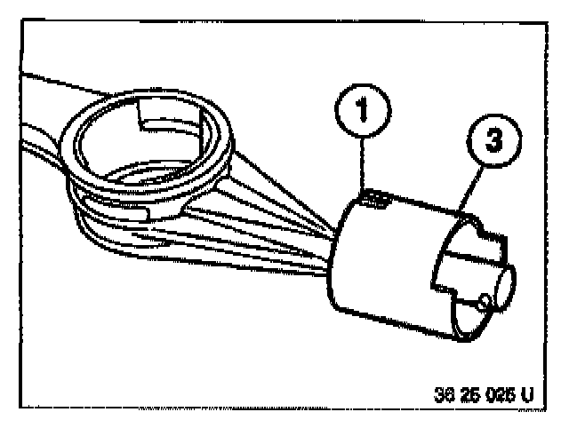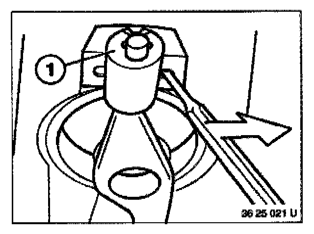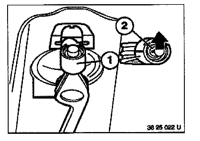 Lever out spring (1) with a screwdriver from lug (2) on housing. Tilt spring upwards.