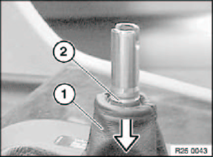 Push rubber gaiter (1) down until groove (2) is exposed.