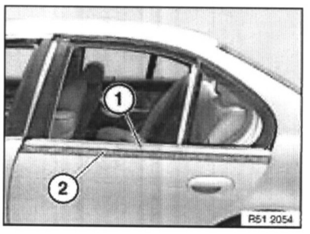 Window cavity cover strip (1) must be flush with door edge at front and rear.