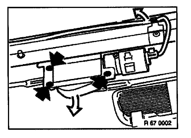 Pull out roller sun blind until the linkage on the left and right can be suspended. Reinstall retaining clips.