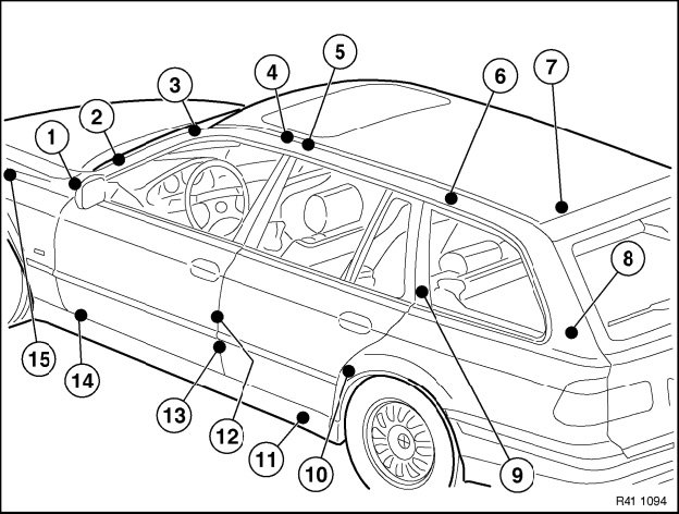 - (13) Bottom of B-pillar, Spare part already in expanded form