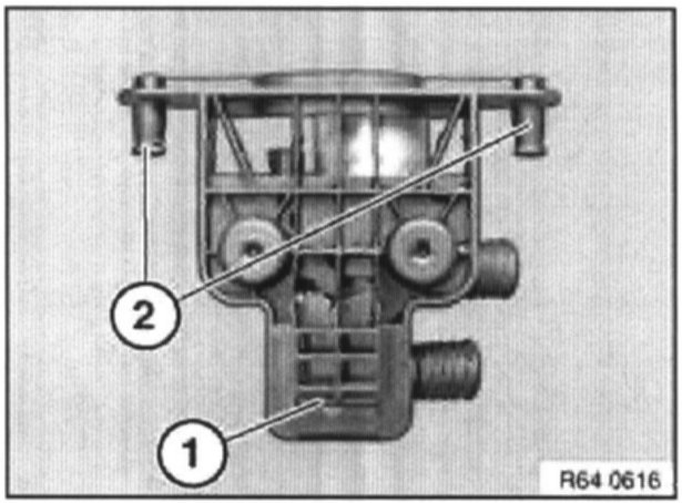 Pull water valve for heater (3) in direction of arrow out of rubber mounts.