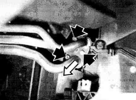 Unfasten water hoses (1 to 3) on the end wall. Carefully blow out lines to