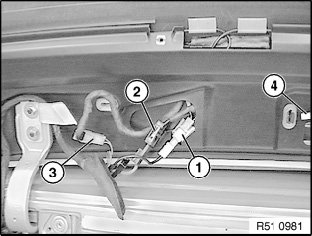 Disconnect connector (1 ... 3) and pull off lug (4).