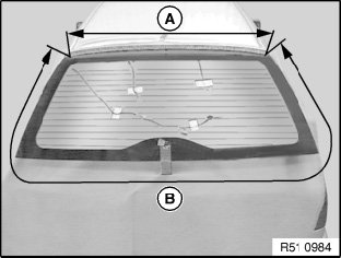 Apply cement bead at a distance (A ... C) to rear window edge.