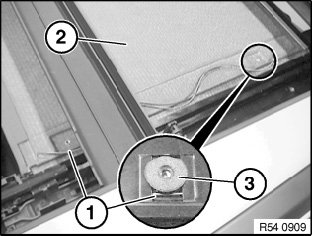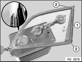 - No grease must make contact with the cemented area (3) of the side window.