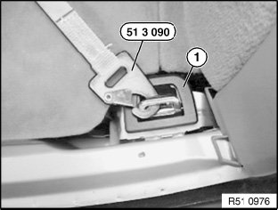 Tension middle seat belt tensioner (4) until eye is approx. 400 mm above floor insert (4).