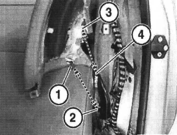 - Push guide (1) into bracket (2) and guide (3) into bracket (4).