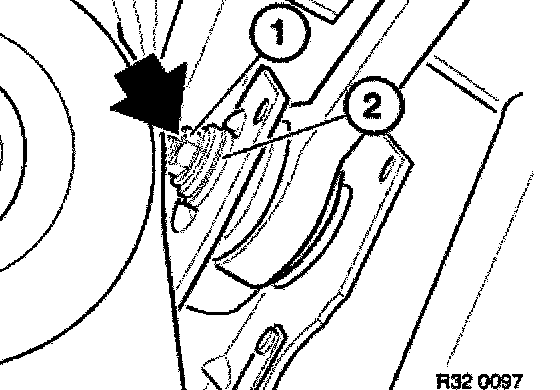 Before adjusting, replace and tighten down disc collar nut (1). Ensure that eccentric washer (2) is correctly located.