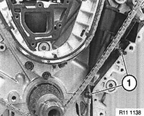 Note: Install timing chain inside screw-in pin ( 1 ).
