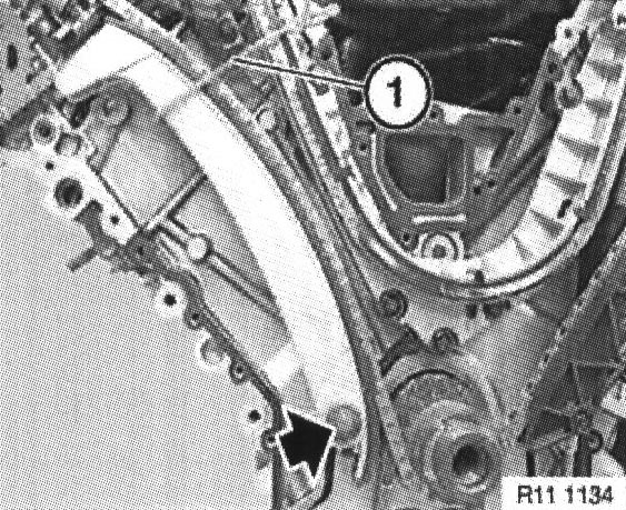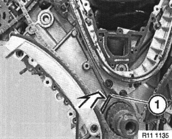 Note: Engines in E53 (X5) have an external oil separator. Grub screw ( 1 ) is not fitted.