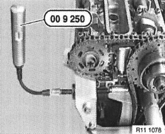 Attach special tool 11 6 440 to camshaft adjustment unit on cylinder bank 1 to 4 and move at 40 Nm to left-hand stop.