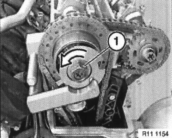 Tighten screw connection ( 1 ) of exhaust camshaft on cylinder bank 1 to 4 to an initial torque of 15 Nm and then slacken off by a 1/4 turn.