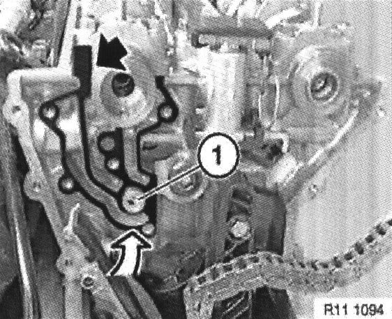 Note: The gasket is secured in a groove on the camshaft bearing cover and over the non-return valve (1).