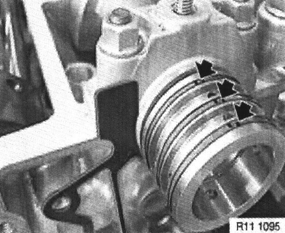 If there is pitting or scoring in the longitudinal direction, the plain compression rings and the distributor must be replaced.