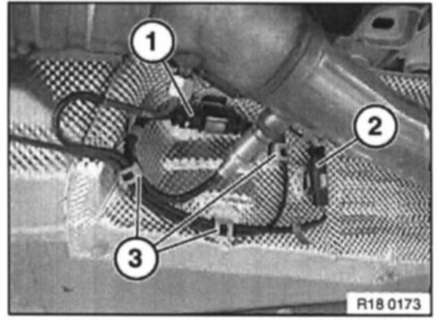 Disconnect plug connection for exhaust temperature sensor on left.