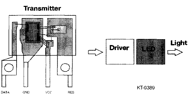 A driver is fitted in the transmitter. The driver energizes an LED (light-emitting diode).