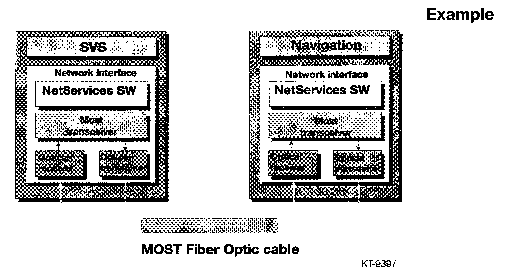- A MOST transceiver (interface between the optical waveguide receiver/transmitter and the electronic network driver).