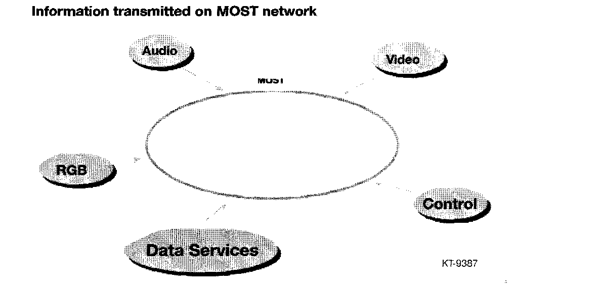 1. The MOST bus transports control data as well as data from audio, video, navigation and other services (SMS=Short Message Service, TMC =Traffic Message Channel, in other markets).