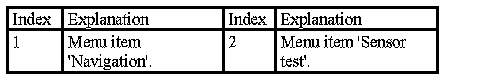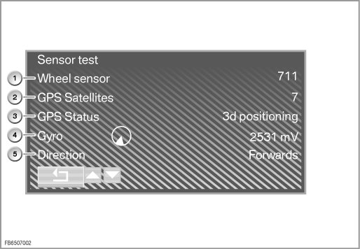 Select menu item 'Navigation' and then 'Sensor test'.